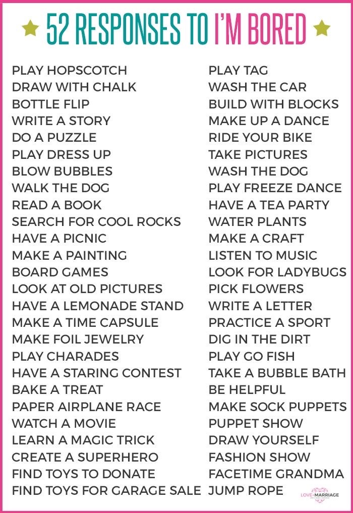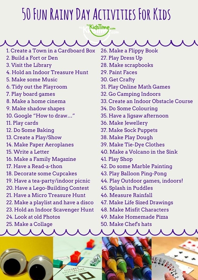 50 Fun Rainy Day Activities 52 Responses to I'm Bored 101 Fun Ways to Keep Kids Learning All Summer Long Heavy Work Activities for Kids Home Learning Suggested Timetable Indoor Activity Ideas for Kids Learning at Home Guide Phonics Play Summer Activity List